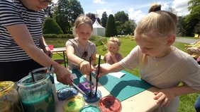 Ein buntes Rahmenprogramm mit viel Musik, Bastelangeboten, einer Ballonkünstlerin, einer Hüpfburg, Spielgeräten und Bewegungslandschaften sorgt dabei für beste Unterhaltung und rundet den Sommertag im Park mit Markt und Picknick ab.